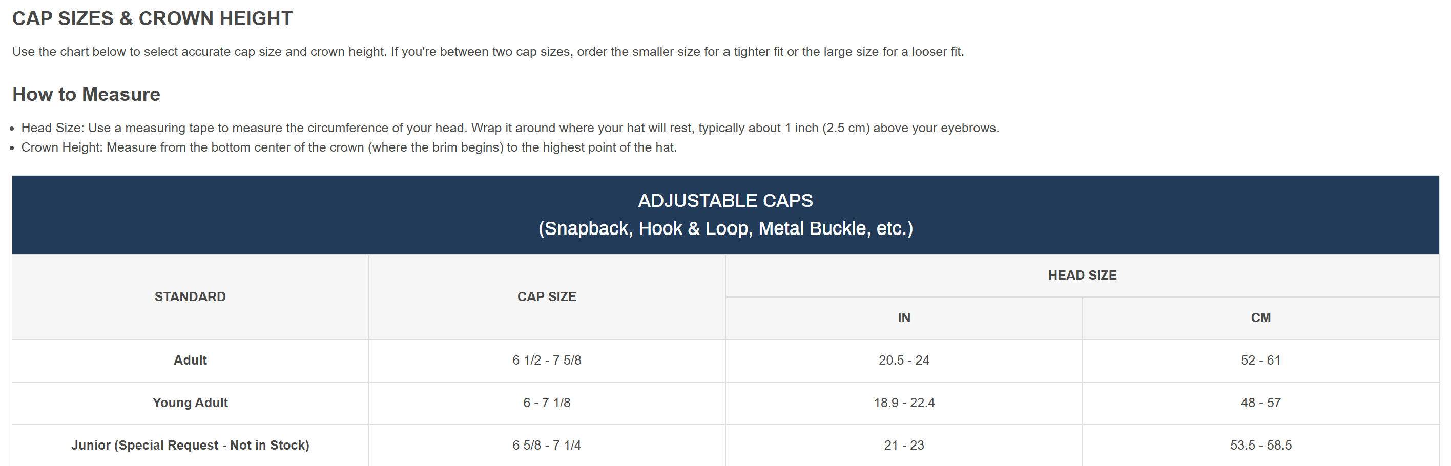 CAP SIZE 6 1/2 - 7 5/8